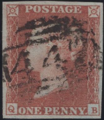 1850 1D ARCHER EXPERIMENTAL PERFORATION PL.98 (SG16b)(QB) MATCHED PAIR. Good used 1850 1d Archer experimental perforation pl.98 (SG16b) lettered QB, corner crease and one short perforation, cancelled London '78' District Office numeral clear of alphabet 1 check letters. Matched with fine 1d imperf (SG8) cancelled '447' numeral of Leeds. Both stamps show SE square re-cut. (Ref 135045).