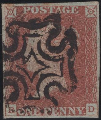 1841 1D RED PLATE 1B (SG7)(RD). Fine used 1841 1d red pl.1b (SG7) lettered RD with four fine margins and cancelled fine strike black Maltese cross. Stamp clearly shows 7 and 10 o'clock ray flaws NW square and bottom 'R' square very thin. (Ref 135279).