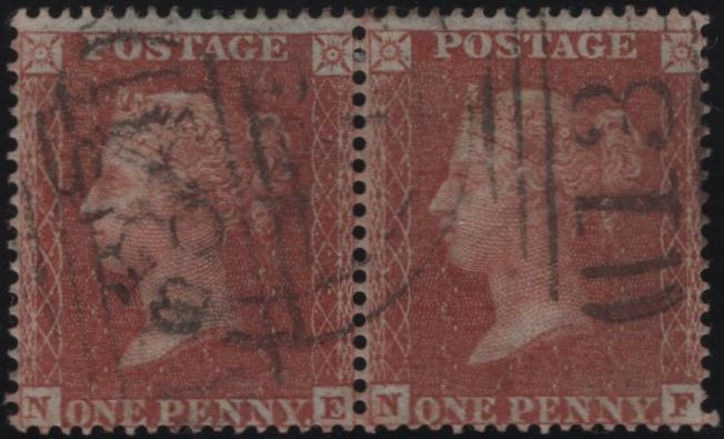 • 138769 1855 DIE 2 1D PL.8 L.C.16 (SG26) HORIZONTAL PAIR LETTERED NE NF.
