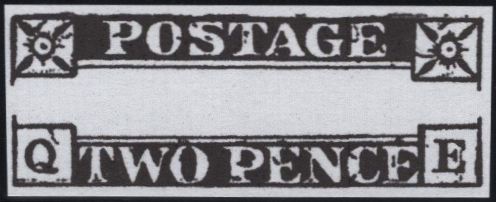 1858 2D BLUE PL.6 L.C.16 (SG36a)(QE MAJOR RE-ENTRY SPEC F8c). Fine used 1858 2d blue pl.6 L.C.16 (SG36a) lettered QE showing VERY FINE RE-ENTRY MARKS IN UPPER/LOWER SQUARES, POSTAGE AND VALUE (Spec F8c), London cancellation. (Ref 141029).