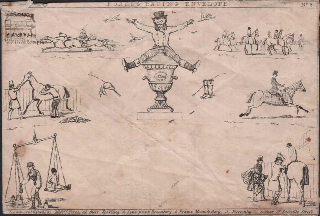 1840 ORIGINAL 'FORES'S RACING ENVELOPE No.5' UNUSED. Unused example of the original 'FORES'S RACING ENVELOPE No.5', corner fault upper left and some creasing etc, but priced accordingly. (Ref 141090).