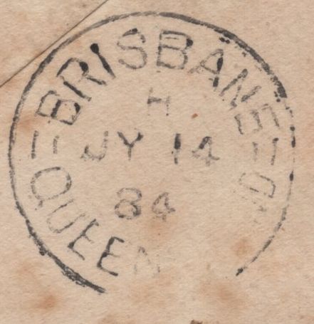1884 MAIL BIRMINGHAM TO BRISBANE WITH 6D GREEN (SG194). Envelope, tone spots, from Birmingham to the Parliamentary Library in Brisbane, Queensland with fine 6d green (SG194) lettered EC tied fine strike 'BIRMINGHAM/75' duplex JU 2 84 codes 54Z. On reverse 'BRISBANE/QUEENSLAND' date stamp JY 14 84. (Ref 141651).
