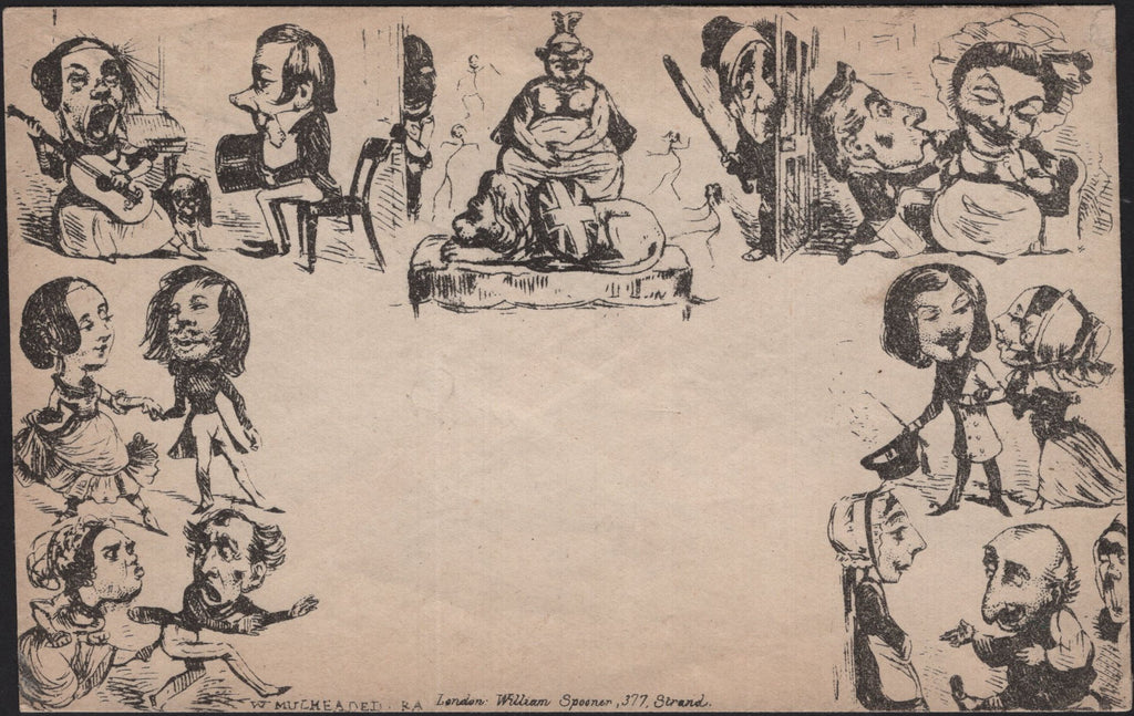 1840 ORIGINAL SPOONER CARICATURE NO.1 WITH SCENES OF FLIRTATION. A good unused ORIGINAL example of the 1840 Spooner Caricature No.1 with various scenes of courtship or flirtation including Britannia casting a leering glance. Vertical bend. (Ref 142271).