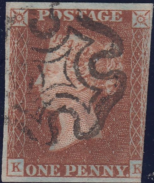 1841 1D RED PL. ELEVEN (SG7)(KK). Used 1841 1d red plate XI (SG7) lettered KK, touched at lower right otherwise good margins and cancelled fine black M.C. Stamp shows fine "7 o'clock ray flaw NE square". (Ref 111900).