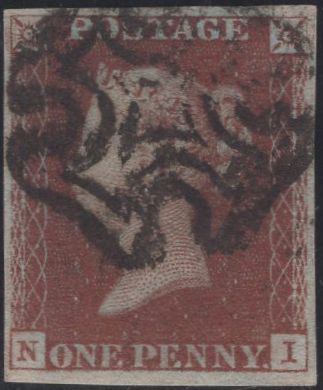 1841 1D PLATE ELEVEN (SG7)(NI). Good to fine used 1841 1d plate eleven (SG7) lettered NI with fine margins, cancelled clear strike black Maltese cross, 7 o'clock ray flaw NE square visible. (Ref 135290).