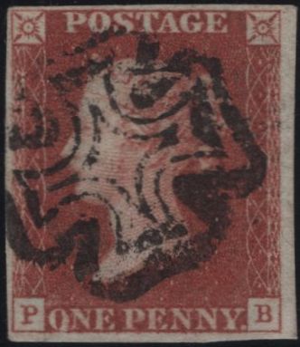1841 1D RED PL.9 (SG7)(PB) MANCHESTER 'FISHTAIL' DISTINCTIVE MALTESE CROSS (Spec AS59uf). Fine to very fine used 1841 1d red plate 9 (SG7) lettered PB, four good margins and cancelled very fine strike Manchester 'FISHTAIL' distinctive Maltese Cross (Spec AS59uf). (Ref 142060).
