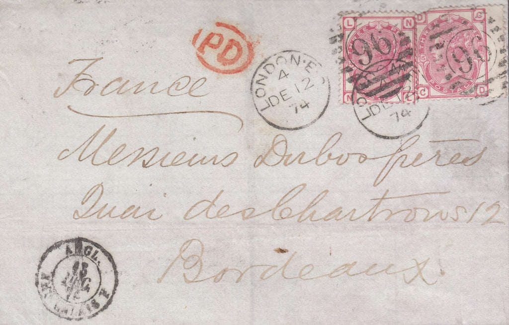 • 113932 1874 MAIL LONDON TO FRANCE.