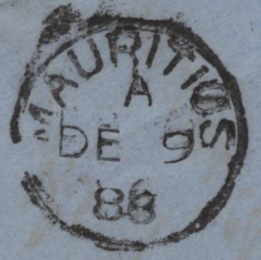 1886 MAIL LIVERPOOL TO MAURITIUS 6D GREEN (SG194) 1D LILAC (SG172) X 2. Fine letter from Liverpool dated 13 Nov 1886 to 'Mess. Pipon Adam and Co, Mauritius', endorsed 'Via France' with fine pair 1d lilac (SG172) and fine 6d green (SG194) tied fine strikes 'EXCHANGE/LIVERPOOL' double ring date stamp NO 15 86. On reverse 'MAURITIUS' date stamp DE 9 88. Fine usage. (Ref 142062).