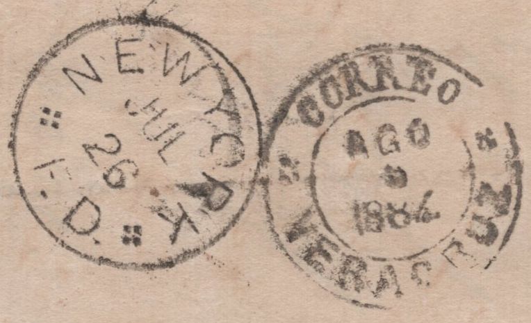 1884 MAIL LONDON TO VERA CRUZ, MEXICO WITH 1D LILAC (SG172) AND 4D GREEN (SG192). Fine letter from Lombard Street, London to 'Sr. Dr. C. A. Martinez, Vera Cruz, Mexico' with 1d lilac (SG172) and 4d green (SG192) tied good to fine strikes 'L1/GRACECHURCH ST/G.S 1' duplex 17 JY 84. Endorsed 'Via New York and El Paso'. Stamps paying 4d postage and 1d late fee. (Ref 141642).