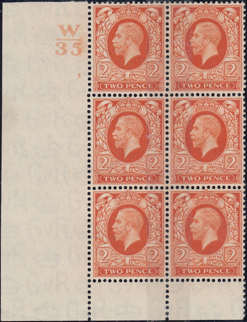 1935 2d photogravure intermediate format (SG 442Var). Fine unmounted o.g. cylinder 5 control W35 (state ii) perf 6 block of 6. (Ref 35623).