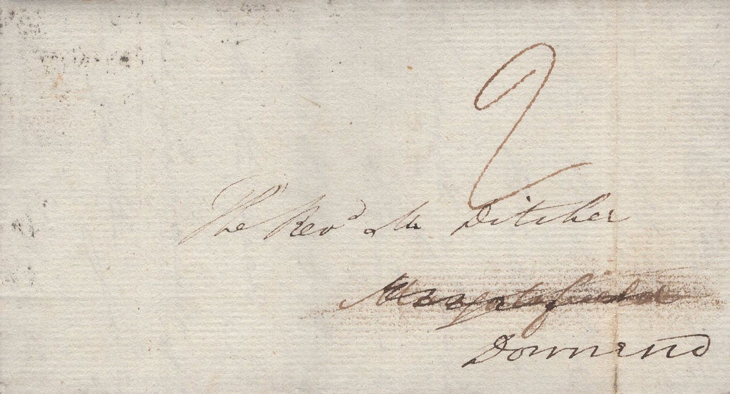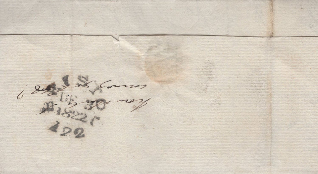 1822 MAIL BRISTOL TO MANGOTSFIELD, DOWNEND (BRISTOL) WITH 'BRISTOL/122' DATED MILEAGE MARK. Letter used locally in Bristol to 'The Revd Ditcher, Mangotsfield' re-directed to 'Downend' and charged '2'. On reverse fine strike 'BRISTOL/122' circular dated mileage mark DE 3 1822. (Ref 132226).