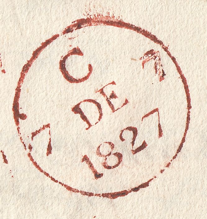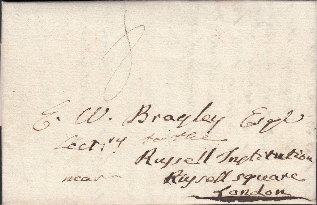1827 CAMBS/'CAMBRIDGE 52' MILEAGE MARK (CB50)/LECTURES ON LITERATURE. Entire from Cambridge to The Russell Institution Russell Square London dated Dec 6th 1827, on reverse circular CAMBRIDGE/52 dated mileage mark (CB50) DE 6 1827. The letter from a Marquis Spineto detailing proposed series of 10 lectures on the literature of modern Europe. Unusual. (Ref 86905).