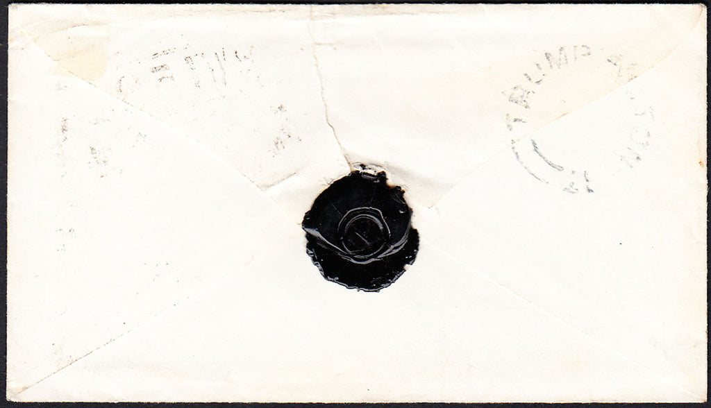 1858 CAMBS/'TRUMPINGTON-ST' UDC. Envelope Cambridge to Woolpit, Suffolk with Die 2 1d rose red on white paper (SG40)(faults) lettered LB tied CAMBRIDGE sideways duplex FE 21 58. On reverse fair strike TRUMPINGTON-ST udc in dark blue. (Ref 87525).