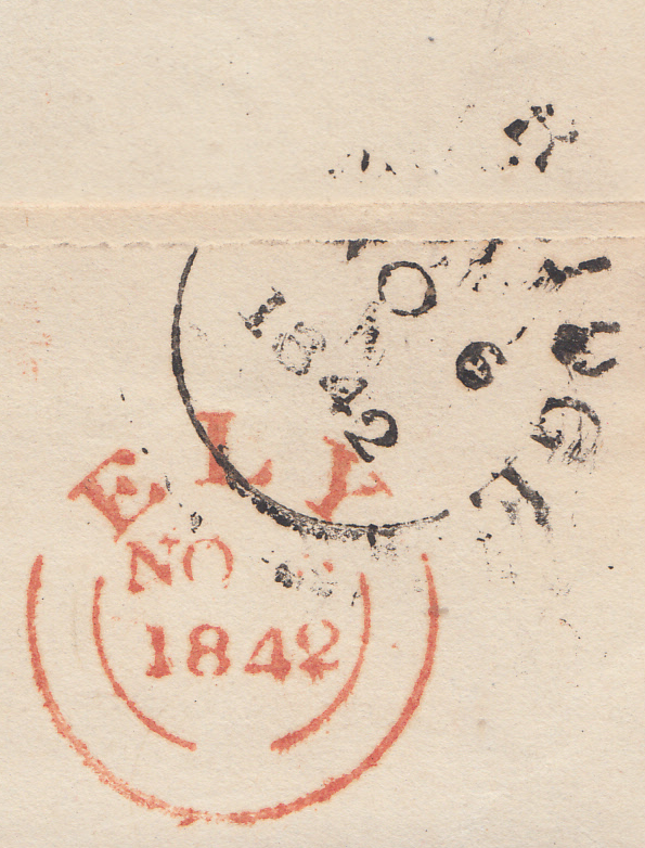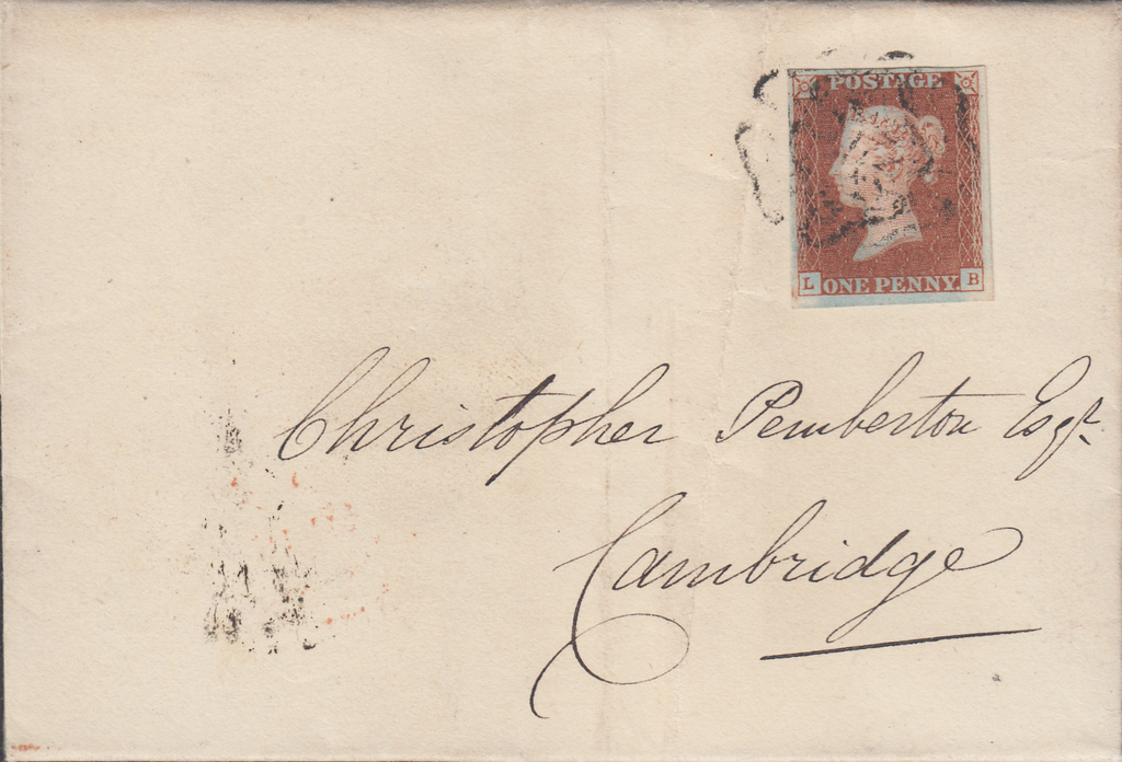 1842 ELY MALTESE CROSS. Entire Ely to Cambridge with fine 1d (SG8) letterd LB, with four fine margins tied several good to fine strikes of the ELY MC. Back stamped ELY NO 5 1842, filing folds clear of stamp. (Ref 87729).