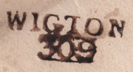 • 140973 1824 MAIL WIGTON, CUMBERLAND TO LONDON WITH 'WIGTON/309' MILEAGE MARK (CU530).