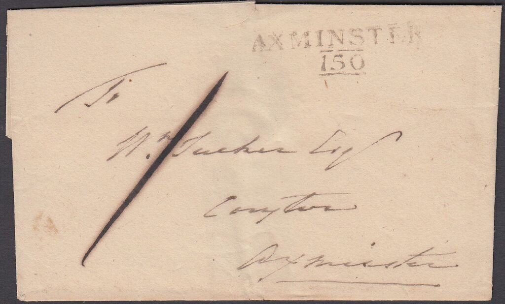 DEVON/'AXMINSTER 150' MILEAGE MARK(DN28). Undated wrapper Axminster to Colyton with good strike of the AXMINSTER/150 mileage mark in black (DN28). (Ref 82733).