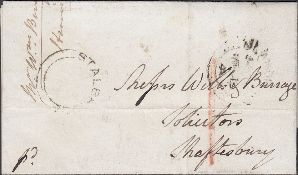 • 119828 1848 MAIL STALBRIDGE (DORSET) TO SHAFTESBURY/'STALBRIDGE' UDC.