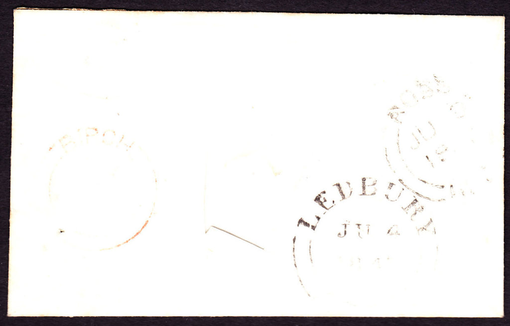 1847 HEREFORDSHIRE/'BIRCH' UDC . Envelope Ross to Ledbury with 1d (SG8) lettered NI, touched in two places, tied indistinct cancellation, on reverse good to fine strike 'BIRCH' udc in red, ROSS date stamp JU 9 1847 and LEDBURY JU 4 1847. (Ref 65791).