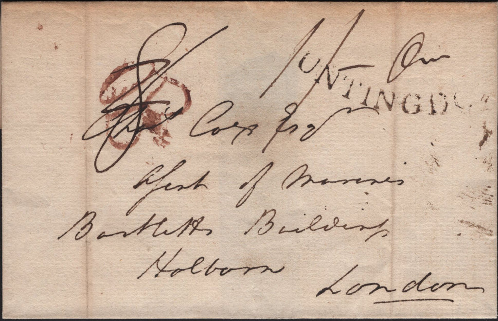 • 141706 1795 MAIL HUNTINGDON TO LONDON WITH 'HUNTINGDON' CONCAVE HAND STAMP (HN39).