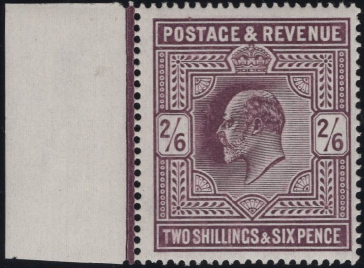 1905 2s6d DULL PURPLE ON CHALK-SURFACED PAPER (SG262) SUPERB MINT EXAMPLE. A superb o.g. left marginal example 1905 2s6d dull purple on chalk-surfaced paper (SG262) with excellent fresh colour. (Ref 135799).