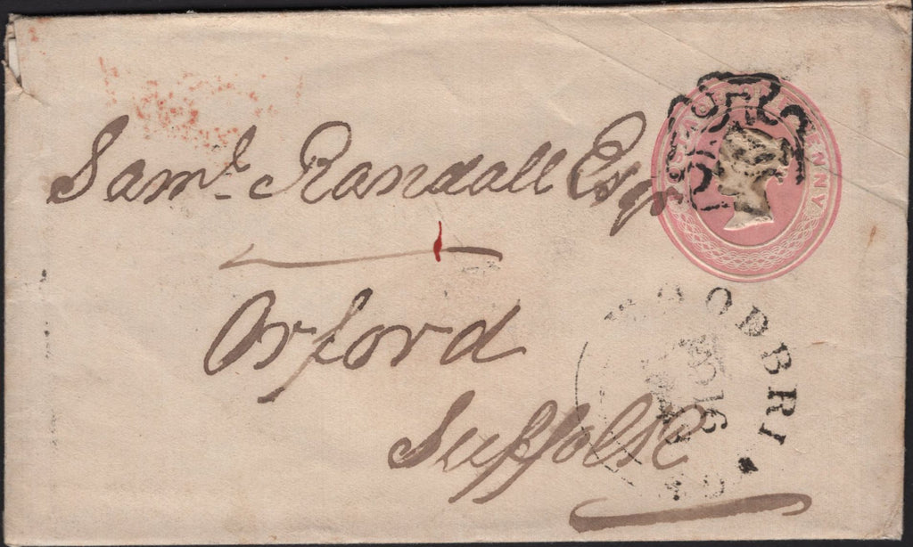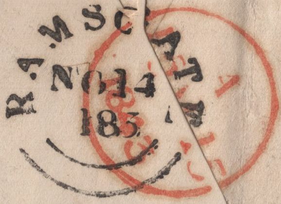 1843 1D PINK RAMSGATE, KENT TO ORFORD, SUFFOLK WITH RAMSGATE MALTESE CROSS. Fine 1d pink envelope with letter from Ramsgate to 'Saml. Randall Esq, Orford, Suffolk', fine strike Ramsgate Maltese cross in black and on reverse 'RAMSGATE' date stamp NO 14 1843. (Ref 142380).