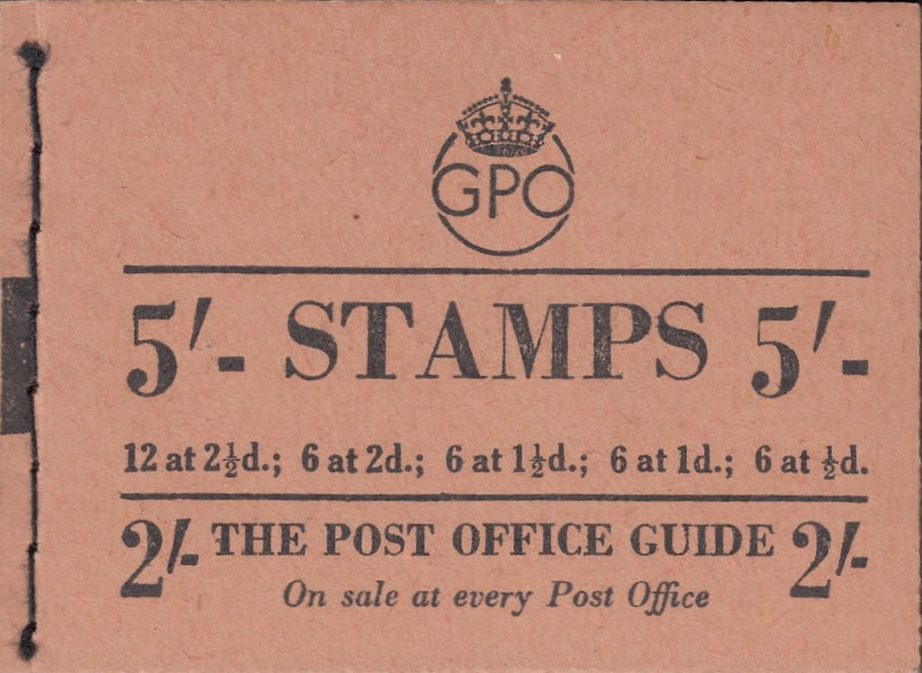1953 KGVI 5/- BOOKLET (BD32). A fine 1953 KGVI 5/- booklet (BD32) dated Jan 1953, 2d pane inverted watermark and slight trimming of perforations, other panes watermark upright and superb perforations. (Ref 115600).