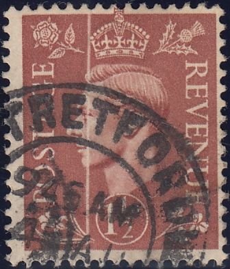 1942 1½D PALE RED-BROWN (SG487), USED WITH PAPER FOLD PRIOR TO PRINTING. A good to fine used 1942 1½d pale red-brown (SG487) with unusual PAPER FOLD PRIOR TO PRINTING cancelled STRETFORD date stamp. Seldom seen used condition. (Ref 125377).