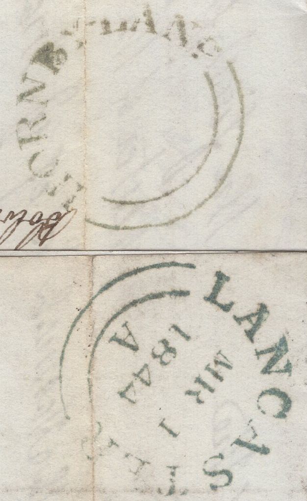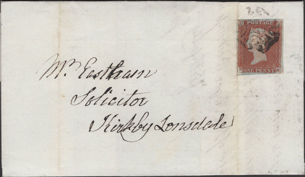 1844 MAIL METHLING, LANCS TO KIRKBY LONSDALE WITH 1D (SG8) AND 'HORNBY-LANC' UDC (LA535). Letter from 'Vicarage House, Methling' dated Feb 29th 1844 (Leap Year) to 'Mr Eastham, Solicitor, Kirkby Lonsdale' with fine 1d (SG8) lettered BH, fine four margins and tied fine strike Lancaster Maltese cross. On reverse good to fine strike 'HORNBY-LANC' udc in black (LA535) and 'LANCASTER' date stamp MR 1 1844. (Ref 137129).