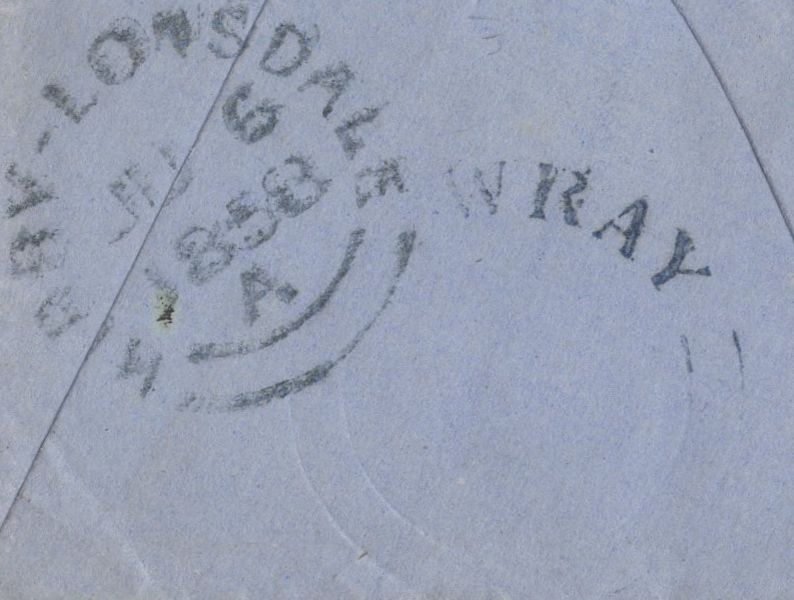 • 137135 1858 MAIL WRAY, LANCS TO KIRKBY LONSDALE WITH 1D (SG40) AND 'WRAY' UDC (LA1356).