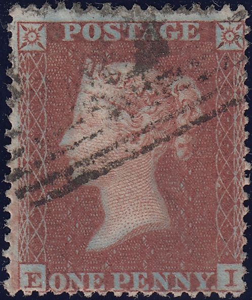 1854 RES. PL.1 (EI)(SG17). Fine used 1854 Die1 reserve pl.1 S.C.16 (SG17) lettered EI in a shade of DEEP RED-BROWN on blued paper, Scottish cancellation. (Ref 115974).