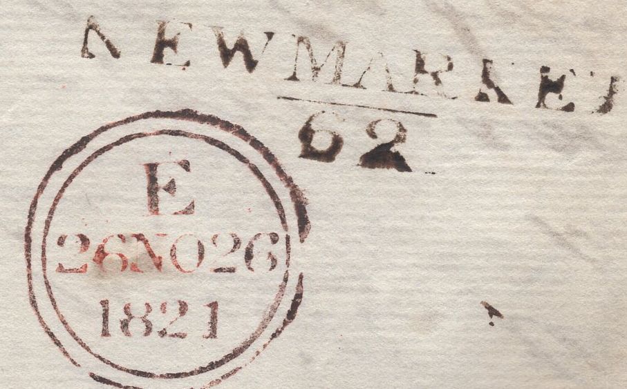 • 135528 1821 MAIL DALHAM, SUFFOLK TO DAVENTRY WITH 'NEWMARKET/62' MILEAGE MARK (SK277).