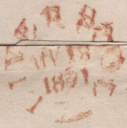 1831 MAIL WOODSIDE (BIRKENHEAD) TO DONCASTER WITH VARIOUS HAND STAMPS INCLUDING 'WOODSIDE' HAND STAMP (LL538) FLEURONS NOT VISIBLE. Wrapper from Woodside (Birkenhead) to Doncaster, post paid '10', on front good strikes boxed 'PAID AT/LIVERPOOL' and 'Liverpool/Py Post' hand stamps. On reverse fine strike 'WOODSIDE' circular hand stamp in black (LL538) with fleurons not visible, also 'LIVERPOOL' date stamp MY 18 1831. (Ref 135788).