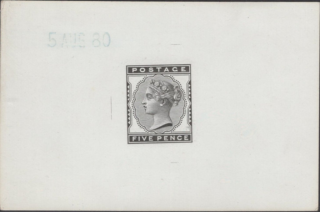 1880 5D INDIGO (SG169) DIE PROOF. A superb die proof in black on white glazed card 1880 5d indigo (SG169) with date '5 AUG 80'. (Ref 136179).