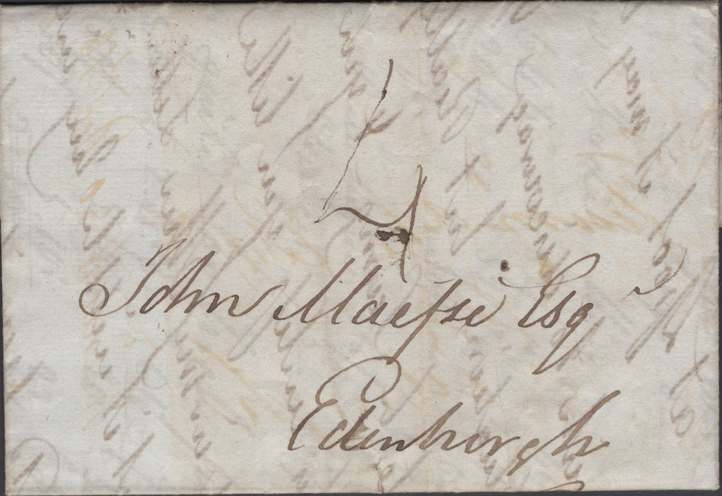 • 136187 1839 UNIFORM FOURPENNY POST MAIL GREENOCK TO EDINBURGH WITH MANUSCRIPT '4'.