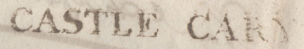 1822 MAIL CASTLE CARY, SOMERSET TO MERE WITH 'CASTLE CARY' STRAIGHT LINE HAND STAMP IN BLACK (SO323). Fine letter from Castle Cary to 'Mr John Larkham, Solicitor, Mere' dated Oct 23 1822, charged '6' and on front very fine strike 'CASTLE CARY' straight line hand stamp in black (SO323). Hand stamp used one year earlier than County Catalogue records. (Ref 136198).