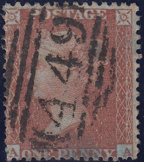 PL.21 (SPEC C6)(AA)/MISSING IMPRIMATUR LETTERING. Good used 1855 die 2 1d pl.21 L.C.14 (spec C6) lettered AA, several short perforations at foot, cancelled neat '449' numeral of Leicester. MISSING IMPRIMATUR LETTERING. (Ref 118675).
