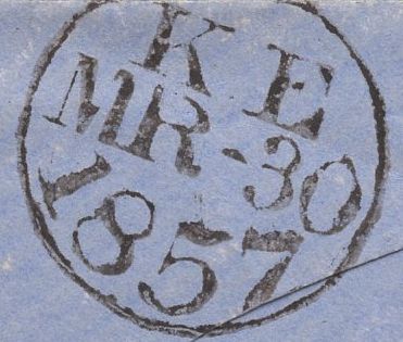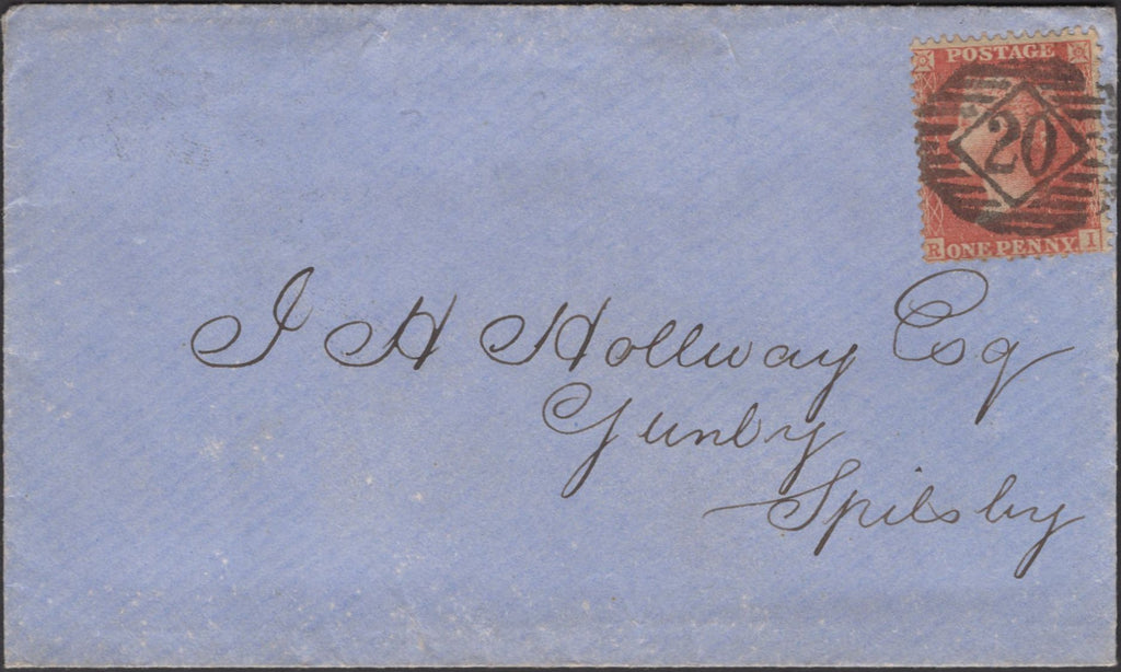1857 MAIL LONDON TO SPILSBY WITH DIE 2 1D PL.44 ORANGE-BROWN (SG33 SPEC C8(5)(RI). Envelope from London to 'J H Hollway Esq, Gunby, Spilsby' with good used die 2 1d pl.44 orange-brown shade (SG33 Spec C8(5) lettered RI tied fine strike London '20' Inland Office numeral. On reverse London date stamp 30 MR 1857 and 'SPILSBY' MR 31 1857. (Ref 136167).