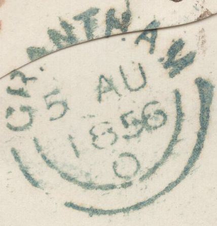 1856 1D PINK ENVELOPE LEADENHAM, LINCS TO CHELTENHAM WITH 'LEADENHAM' UDC. Fine 1d pink envelope from Leadenham to Cheltenham cancelled fine strike '321' numeral of Cheltenham, on reverse good strike 'LEADENHAM' udc in blue and 'GRANTHAM' date stamp 5 AU 1856. (Ref 137470).