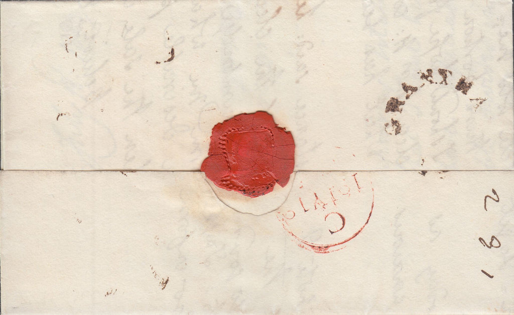 1825 LINCS/GRANTHAM MILEAGE MARK (LI430). Wrapper Grantham to Lincolns Inn London with fair strike of the GRANTHAM/107 circular mileage mark in black (LI430), London date stamp 19JY25. (Ref 68552).