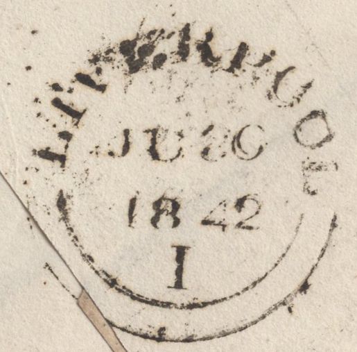 1842 MAIL LIVERPOOL TO CARLISLE WITH 1D (SG8) CANCELLED LIVERPOOL MALTESE CROSS AND 'CARLISLE' DATE STAMP. Fine wrapper from Liverpool to a solicitor in Carlisle with 1d (SG8) lettered TA, just touched at lower right, tied fine strike Liverpool Maltese cross and also good to fine strike 'CARLISLE' date stamp JY 1 1842. (Ref 135240).