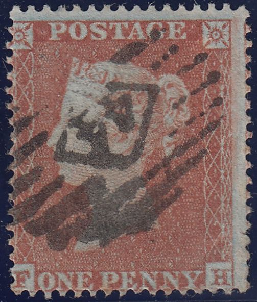 PL.192 (FH)(SG17). Good used 1854 die 1 1d pl.192 S.C.16 (SG17) lettered FH cancelled London '44' Inland Office numeral. Corner bends. (Ref 114050).
