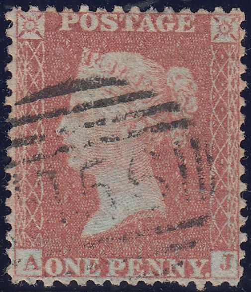PL.17 (AJ)(SPEC C6)/MISSING IMPRIMATUR LETTERING. Good used 1855 die 2 1d pl.17 lettered AJ L.C.14 (spec C6), one short perf at top and cancelled "156" numeral. MISSING IMPRIMATUR LETTERING. (Ref 107676).
