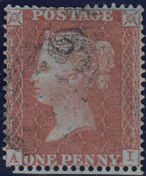 PL.1 (AI)(SG21)/MISSING IMPRIMATUR LETTERING. Used 1855 die 2 1d pl.1 lettered AI S.C.16 (SG21), several short perforations, but on very blued paper and lightly cancelled. MISSING IMPRIMATUR LETTERING. (Ref 113200).
