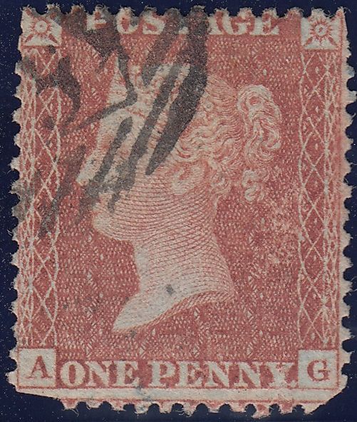 PL.13 (AG)(SPEC C6)/MISSING IMPRIMATUR LETTERING. Used 1855 die 2 1d pl.13 lettered AG L.C.14 (spec C6), perforation faults. MISSING IMPRIMATUR LETTERING. (Ref 113254).