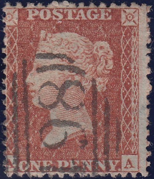 PL.9 (AA)(SG24)/MISSING IMPRIMATUR LETTERING. Fine used 1855 Die 2 1d pl.9 S.C.14 (SG24) lettered AA, fine perforations and cancelled neat strike '498' of Manchester. MISSING IMPRIMATUR LETTERING. (Ref 116175).