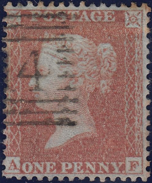 PL.9 (AF)(SPEC C6)/MISSING IMPRIMATUR LETTERING. Good used 1855 Die 2 1d pl.9 L.C.14 (Spec C6) lettered AF, horizontal crease and several toned perforations. MISSING IMPRIMATUR LETTERING. (Ref 116177).