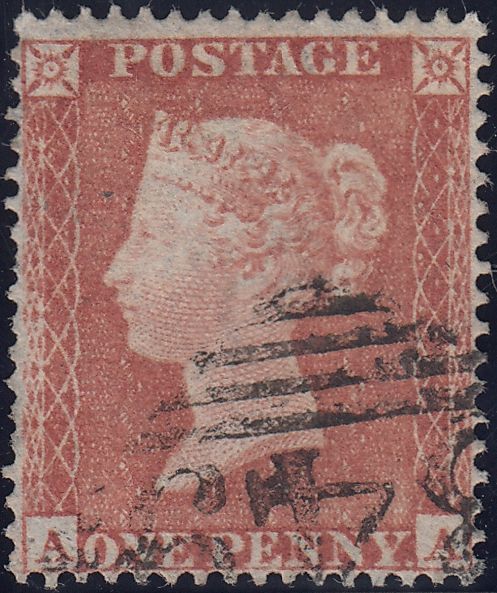 PL.164 (SG17)(AA) MISSING IMPRIMATUR LETTERING. Good used 1854 1d pl.164 S.C.16 (SG17) lettered AA, several short perforations at left but neatly cancelled with cancellation clear of Queen's profile. MISSING IMPRIMATUR LETTERING. (Ref 121243).