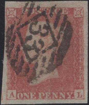 1852 1D PL.166 (SG8)(AL) MISSING IMPRIMATUR LETTERING. Fine used 1852 1d pl.166 (SG8) lettered AL, four close to very large margins and cancelled London '33' Inland Office numeral. MISSING IMPRIMATUR LETTERING. (Ref 135058).