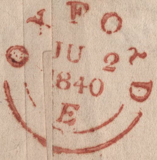 1840 1D MULREADY ADVERT 'J. H. PARKER' (MA462) FINE TO VERY FINE USED OXFORD TO WAKEFIELD. Fine to very fine used 1d Mulready wrapper, stereo A35, from Oxford to 'Mr Cryer, Bookseller, Wakefield' with very fine strike Oxford Maltese cross in red, on reverse 'OXFORD' date stamp JU 2 1840 and 'WAKEFIELD' date stamp JU 4 1840. Within very fine printed advert 'J. H. PARKER' (Spec MA462). Mr Parker states 'I beg leave to call your attention to the accompanying Prospectus, and to inform you that the regular trade allowance of 25 per Cent. will be made on all the Copies which you may receive orders, either Subscribers' or Non-Subscribers'...' dated Oxford June 1840. A very rare advert and this being the only recorded example to date. (Ref 141761).