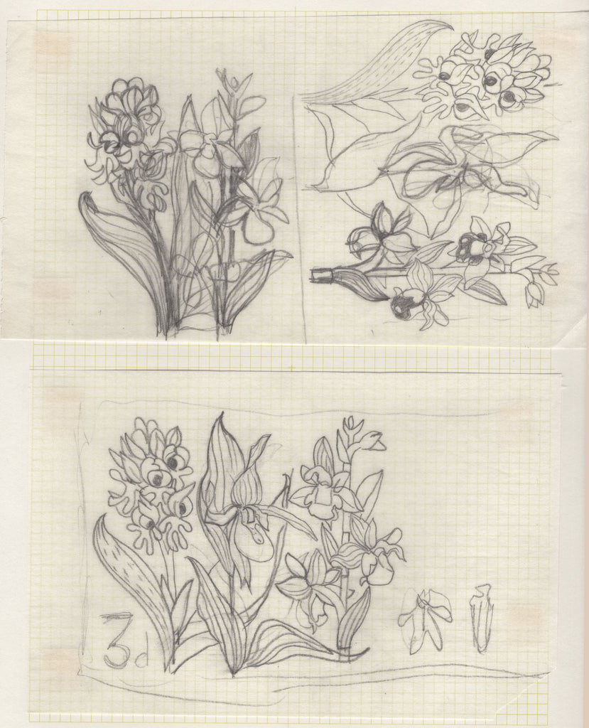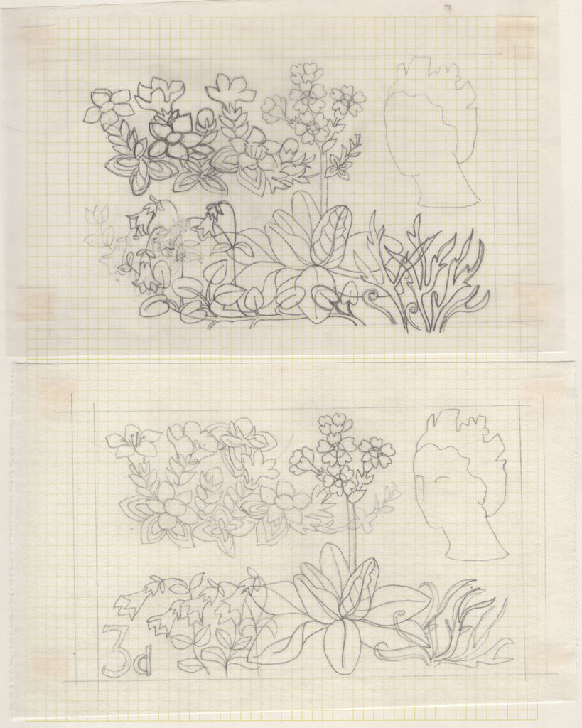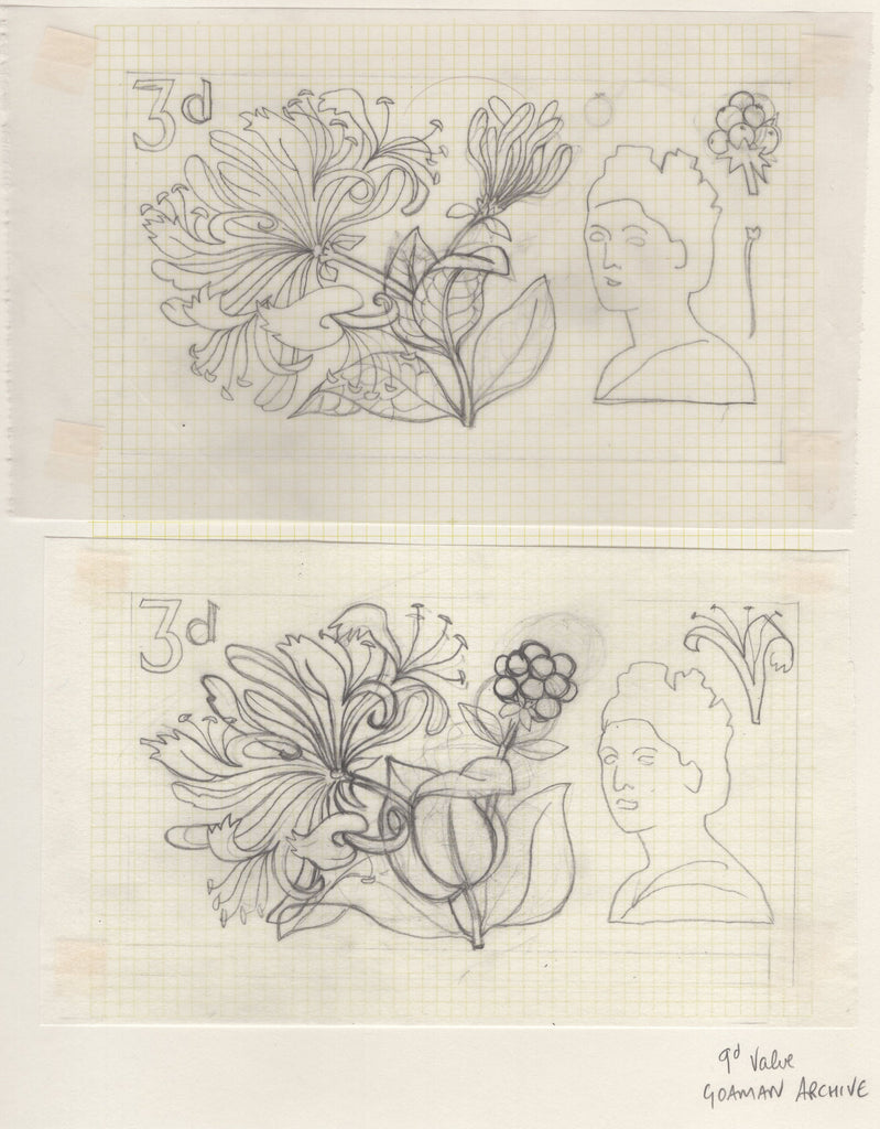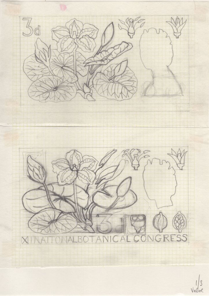 1964 'TENTH INTERNATIONAL BOTANICAL CONGRESS' SUPERB ARCHIVE OF ARTWORK BY THE DESIGNERS OF THIS ISSUE MICHAEL AND SYLVIA GOAMAN. A remarkable group of artwork produced by the stamp designers Michael and Sylvia Goaman for the 1964 Botanical Congress issue (SG655-658), the Goamans were the designers of the accepted designs. This collection is contained in two very full albums and includes letters from the Post Office inviting their submissions, a superb group of pencil sketches on tracing paper many close to the issue designs but also un-adopted suggestions, also enclosed are 16 beautiful larger hand painted essays of suggested designs. A fabulous group. Individual retail approximately £30,000. As a collection £18,500. (Ref 135246).